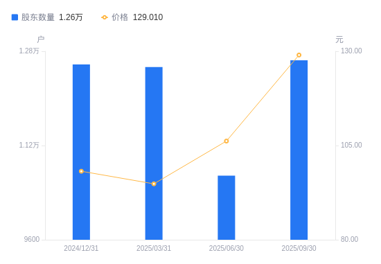 近一年(2024年9月30日至2025年9月30日),海天瑞声A股股东户数从9939户,增加至1.26万户,增幅27.26%,区间股价上涨157.95%。