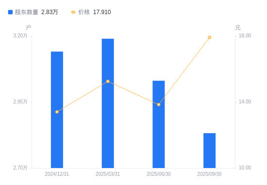 近一年(2024年9月30日至2025年9月30日),河钢资源A股股东户数从2.79万户,增加至2.83万户,增幅1.34%,区间股价上涨20.85%。