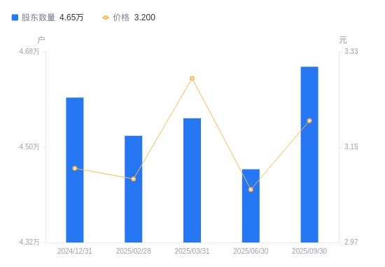 近一年(2024年9月30日至2025年9月30日),冠豪高新A股股东户数从4.7万户,减低至4.65万户,降幅0.98%,区间股价上涨10.34%。