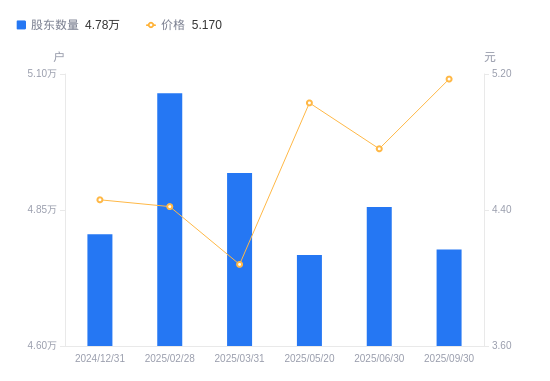 近一年(2024年9月30日至2025年9月30日),安彩高科A股股东户数从5.66万户,减低至4.78万户,降幅15.61%,区间股价上涨23.39%。