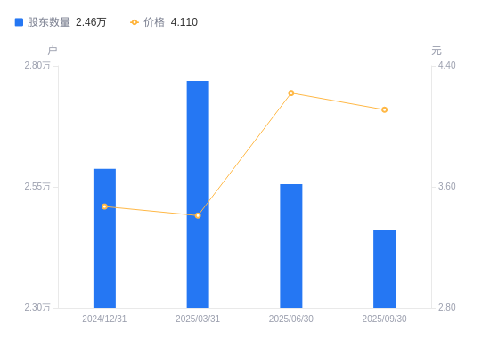 近一年(2024年9月30日至2025年9月30日),亚邦股份A股股东户数从2.4万户,增加至2.46万户,增幅2.37%,区间股价上涨34.31%。