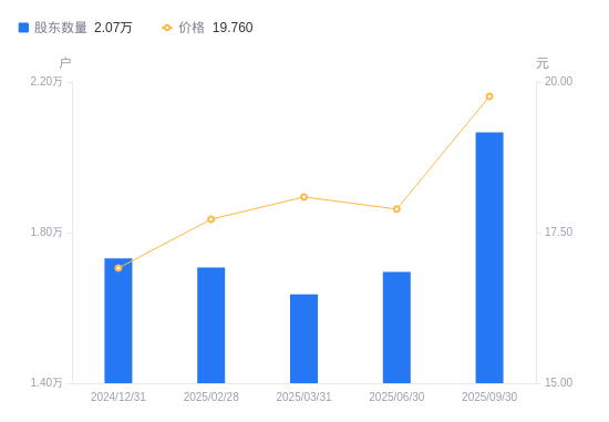 10月30日消息,数据显示,截至2025年9月30日,金宏气体A股股东总户数为2.07万户,较上期(2025年6月30日)增加3705户,增幅21.85%。公司最新A股总股本为4.82亿股,其中流通A股4.82亿股,户均持有流通A股数量为2.33万股,较上期减少5097.3股,降幅17.93%;户均持流通A股市值46.1万元,较上期减少4.76万元,降幅9.35%。