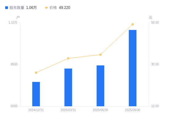 近一年(2024年9月30日至2025年9月30日),路维光电A股股东户数从7719户,增加至1.06万户,增幅36.92%,区间股价上涨129.23%。