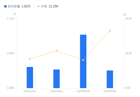 10月30日消息,数据显示,截至2025年9月30日,光峰科技A股股东总户数为1.62万户,较上期(2025年6月30日)减少620户,降幅3.68%。公司最新A股总股本为4.59亿股,其中流通A股4.59亿股,户均持有流通A股数量为2.83万股,较上期增加1046.48股,增幅3.83%;户均持流通A股市值60.23万元,较上期增加20.76万元,增幅52.59%。