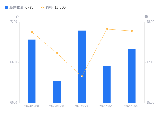 10月30日消息,数据显示,截至2025年9月30日,欧莱新材A股股东总户数为6795户,较上期(2025年9月18日)增加251户,增幅3.84%。公司最新A股总股本为1.6亿股,其中流通A股6777.82万股,户均持有流通A股数量为9974.72股,较上期减少382.59股,降幅3.69%;户均持流通A股市值18.45万元,较上期减少7906.46元,降幅4.11%。