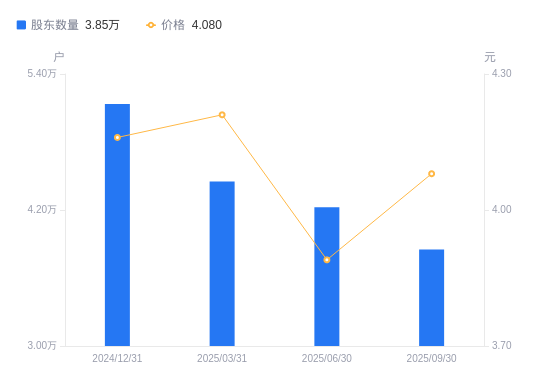 近一年(2024年9月30日至2025年9月30日),信达地产A股股东户数从4.71万户,减低至3.85万户,降幅18.29%,区间股价下跌1.69%。