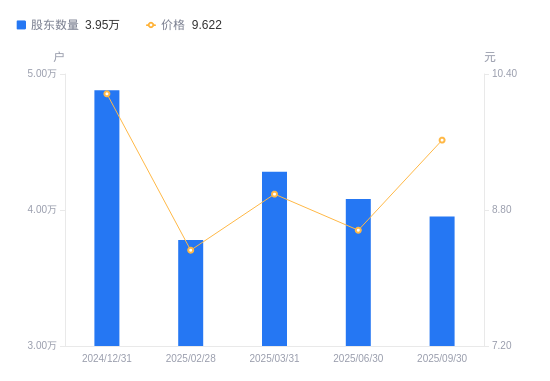 近一年(2024年9月30日至2025年9月30日),武商集团A股股东户数从3.41万户,增加至3.95万户,增幅15.99%,区间股价上涨24.65%。