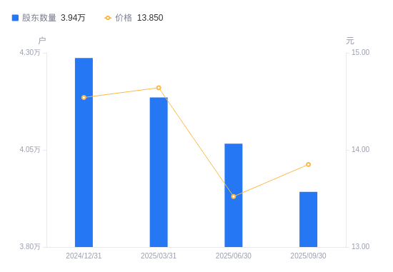 近一年(2024年9月30日至2025年9月30日),三角轮胎A股股东户数从4.33万户,减低至3.94万户,降幅8.97%,区间股价下跌3.75%。