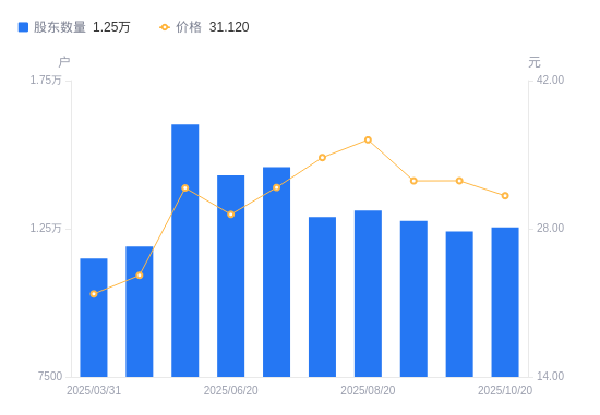 近一年(2024年9月30日至2025年9月30日),润贝航科A股股东户数从1.13万户,增加至1.24万户,增幅9.52%,区间股价上涨65.68%。