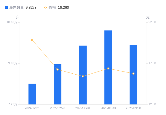 近一年(2024年9月30日至2025年9月30日),中航重机A股股东户数从7.39万户,增加至9.82万户,增幅32.85%,区间股价下跌11.76%。
