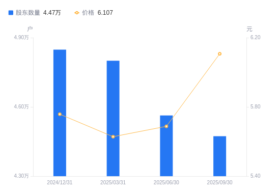 近一年(2024年9月30日至2025年9月30日),山东路桥A股股东户数从5.08万户,减低至4.47万户,降幅11.98%,区间股价上涨11.89%。