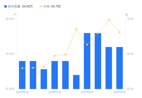 10月30日消息,数据显示,截至2025年9月30日,浪潮信息A股股东总户数为36.4万户,较上期(2025年9月19日)增加1.4万户,增幅4.01%。公司最新A股总股本为14.72亿股,其中流通A股14.7亿股,户均持有流通A股数量为4039.56股,较上期减少161.84股,降幅3.85%;户均持流通A股市值30.06万元,较上期增加3.02万元,增幅11.18%。