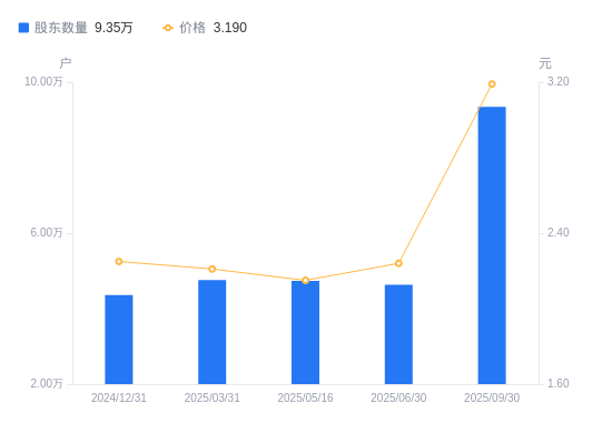 近一年(2024年9月30日至2025年9月30日),西宁特钢A股股东户数从4.24万户,增加至9.35万户,增幅120.68%,区间股价上涨19.92%。
