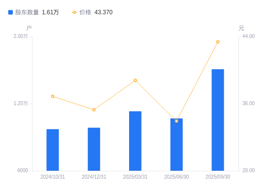 近一年(2024年9月30日至2025年9月30日),正帆科技A股股东户数从6809户,增加至1.61万户,增幅136.57%,区间股价上涨48.88%。