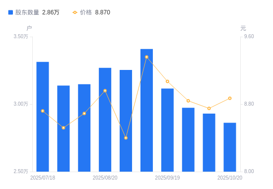近一年(2024年10月10日至2025年10月10日),普路通A股股东户数从2.33万户,增加至2.93万户,增幅25.60%,区间股价上涨57.94%。