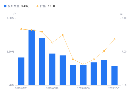 近一年(2024年10月31日至2025年10月31日),金陵药业A股股东户数从3.43万户,增加至3.43万户,增幅0.19%,区间股价上涨11.54%。