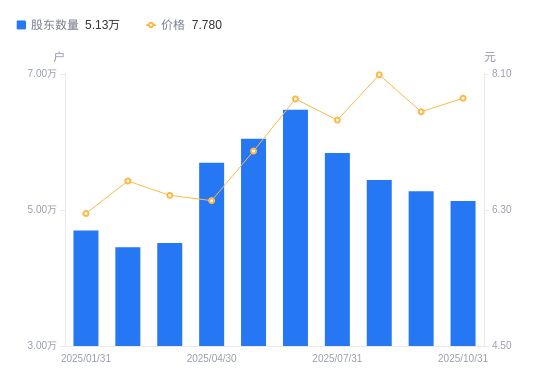 11月3日消息,数据显示,截至2025年10月31日,新北洋A股股东总户数为5.13万户,较上期(2025年9月30日)减少1413户,降幅2.68%。公司最新A股总股本为8.11亿股,其中流通A股7.81亿股,户均持有流通A股数量为1.52万股,较上期增加407.67股,增幅2.75%;户均持流通A股市值11.84万元,较上期增加5837.78元,增幅5.19%。