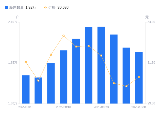 近一年(2024年10月31日至2025年10月31日),神农集团A股股东户数从2.14万户,减低至1.92万户,降幅10.42%,区间股价下跌5.32%。