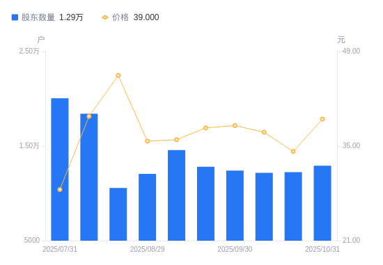 近一年(2024年10月31日至2025年10月31日),唯万密封A股股东户数从1.18万户,增加至1.29万户,增幅9.90%,区间股价上涨98.11%。
