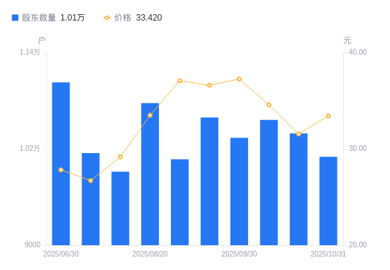 近一年(2024年12月20日至2025年10月31日),博众精工A股股东户数从9779户,增加至1.01万户,增幅3.29%,区间股价上涨21.59%。