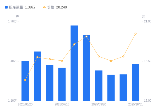 近一年(2024年12月31日至2025年10月31日),浪莎股份A股股东户数从9742户,增加至1.38万户,增幅41.65%,区间股价上涨44.32%。