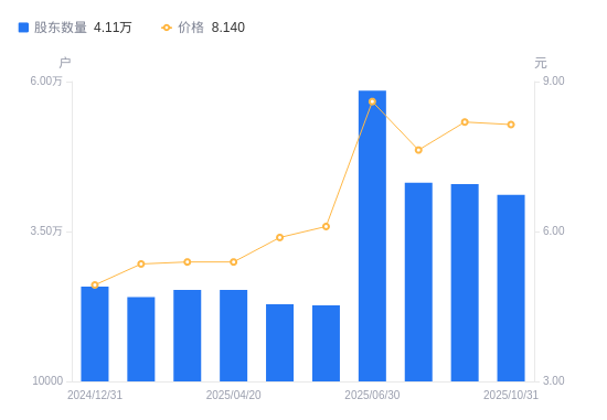 近一年(2024年12月20日至2025年10月31日),准油股份A股股东户数从2.54万户,增加至4.11万户,增幅61.52%,区间股价上涨46.14%。