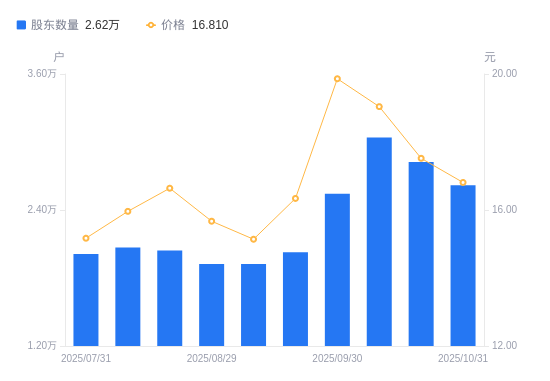 近一年(2024年11月8日至2025年10月31日),国林科技A股股东户数从2.28万户,增加至2.62万户,增幅14.97%,区间股价上涨0.84%。