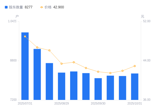近一年(2024年12月31日至2025年10月31日),万邦医药A股股东户数从8673户,减低至8277户,降幅4.57%,区间股价上涨9.49%。