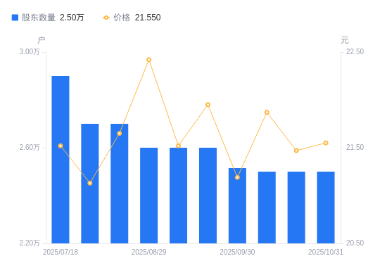 | 日期 | A股户数(户) | 流通A股户均持股数(股) | 户均持股市值(万元) |