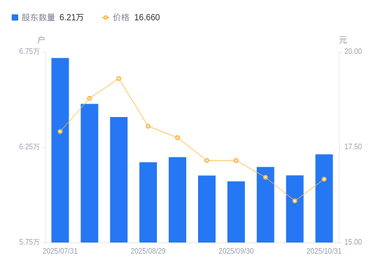 近一年(2024年10月31日至2025年10月31日),欧普康视A股股东户数从6.86万户,减低至6.21万户,降幅9.42%,区间股价下跌10.07%。