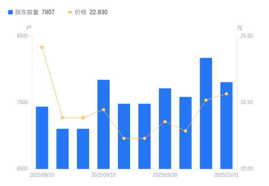 11月3日消息,数据显示,截至2025年10月31日,超越科技A股股东总户数为7807户,较上期(2025年10月20日)减少365户,降幅4.47%。公司最新A股总股本为9425.33万股,其中流通A股4282.64万股,户均持有流通A股数量为5485.64股,较上期增加245.01股,增幅4.68%;户均持流通A股市值12.52万元,较上期增加6851.43元,增幅5.79%。