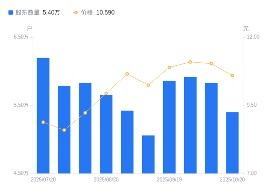 近一年(2024年10月31日至2025年10月31日),中原内配A股股东户数从5.03万户,减低至4.9万户,降幅2.50%,区间股价上涨93.94%。
