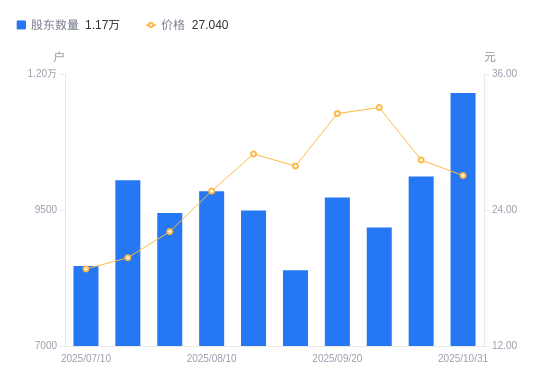 近一年(2024年12月20日至2025年10月31日),福立旺A股股东户数从7465户,增加至1.17万户,增幅56.09%,区间股价上涨80.39%。