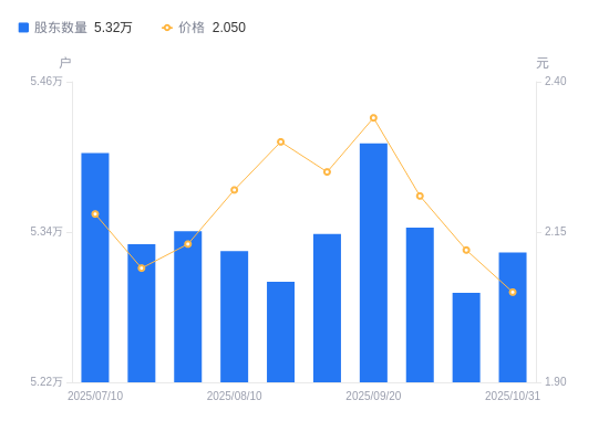 近一年(2024年10月31日至2025年10月31日),节能铁汉A股股东户数从6.65万户,减低至5.32万户,降幅19.91%,区间股价下跌24.63%。