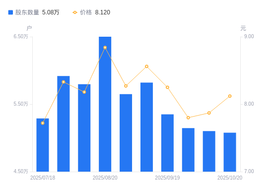 近一年(2024年10月31日至2025年10月31日),慈文传媒A股股东户数从3.47万户,增加至4.89万户,增幅40.84%,区间股价上涨15.33%。