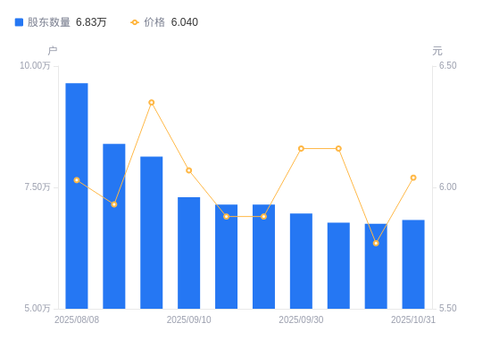 近一年(2024年12月31日至2025年10月31日),湖北广电A股股东户数从7.82万户,减低至6.83万户,降幅12.68%,区间股价上涨44.50%。