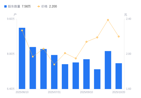 近一年(2024年10月31日至2025年10月31日),启迪环境A股股东户数从6.85万户,增加至7.81万户,增幅13.94%,区间股价上涨5.51%。
