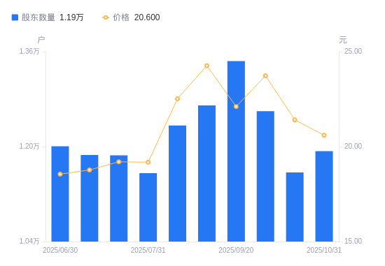 11月7日消息,数据显示,截至2025年10月31日,铭利达A股股东总户数为1.19万户,较上期(2025年10月20日)增加360户,增幅3.11%。公司最新A股总股本为4亿股,其中流通A股3.49亿股,户均持有流通A股数量为2.93万股,较上期减少911.28股,降幅3.02%;户均持流通A股市值60.3万元,较上期减少4.32万元,降幅6.69%。