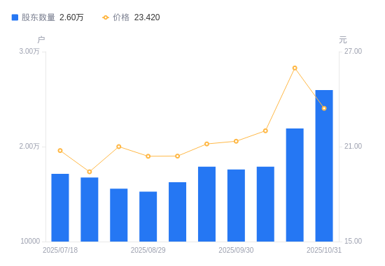 近一年(2024年10月31日至2025年10月31日),三联锻造A股股东户数从1.36万户,增加至2.6万户,增幅90.63%,区间股价上涨72.57%。