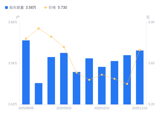 近一年(2024年11月20日至2025年11月10日),天虹股份A股股东户数从3.35万户,增加至3.58万户,增幅6.67%,区间股价上涨11.26%。
