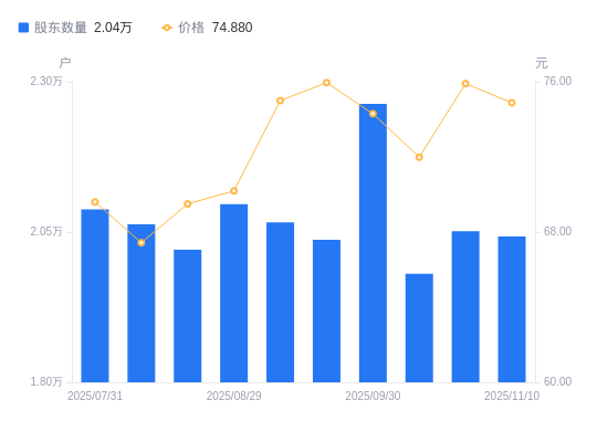 近一年(2024年10月31日至2025年10月31日),义翘神州A股股东户数从2.04万户,增加至2.05万户,增幅0.76%,区间股价上涨22.52%。