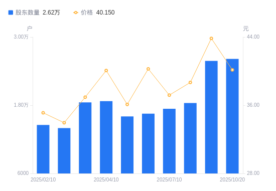 近一年(2024年11月20日至2025年11月10日),西域旅游A股股东户数从1.25万户,增加至2.89万户,增幅130.76%,区间股价上涨0.23%。