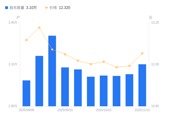 近一年(2024年11月20日至2025年11月10日),劲仔食品A股股东户数从1.95万户,增加至3.1万户,增幅58.80%,区间股价上涨3.05%。