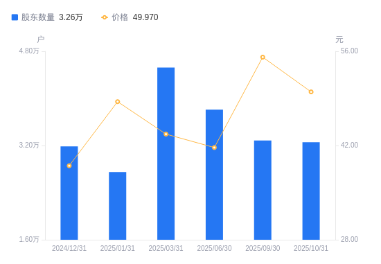 近一年(2024年12月31日至2025年10月31日),北特科技A股股东户数从3.18万户,增加至3.26万户,增幅2.21%,区间股价上涨27.36%。