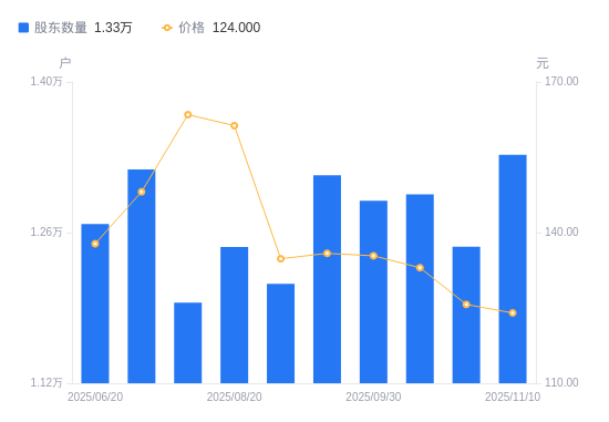近一年(2024年12月31日至2025年11月10日),六九一二A股股东户数从1.77万户,减低至1.33万户,降幅24.86%,区间股价下跌19.31%。