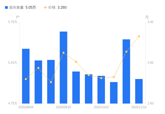 近一年(2024年11月20日至2025年11月10日),南山控股A股股东户数从4.61万户,增加至5.05万户,增幅9.58%,区间股价上涨27.34%。