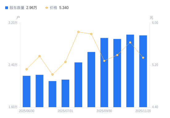近一年(2024年11月20日至2025年11月20日),亚联发展A股股东户数从2.64万户,增加至2.96万户,增幅12.15%,区间股价上涨71.15%。
