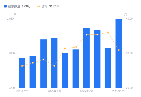 近一年(2024年11月20日至2025年11月20日),和远气体A股股东户数从9883户,增加至1.08万户,增幅9.24%,区间股价上涨44.37%。