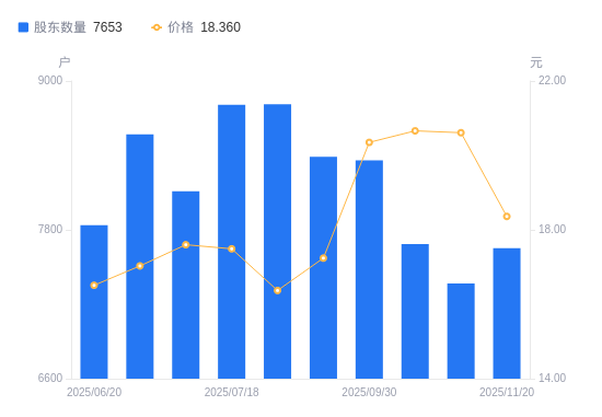 近一年(2024年11月20日至2025年11月20日),中兰环保A股股东户数从7922户,减低至7653户,降幅3.40%,区间股价上涨38.78%。