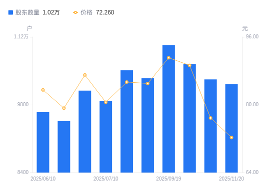 近一年(2024年11月20日至2025年11月20日),瑞迪智驱A股股东户数从1.28万户,减低至1.02万户,降幅20.16%,区间股价下跌7.07%。